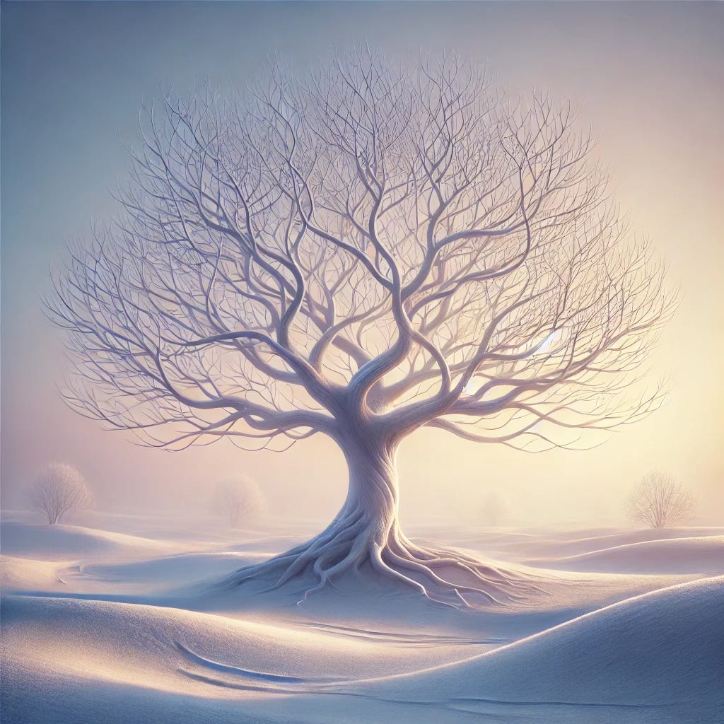 Diese karge Schönheit erinnert uns daran, dass auch wir in der Stille unsere Wurzeln stärken können, um gut gestärkt im neuen Jahr anzukommen. Wie der Baum in seiner Ruhe die Basis für neue Triebe legt, so können auch wir uns jetzt vorbereiten, um auszutreiben, wenn der Frühling kommt.
